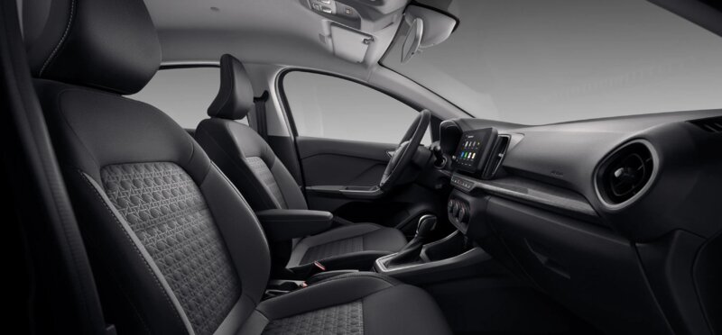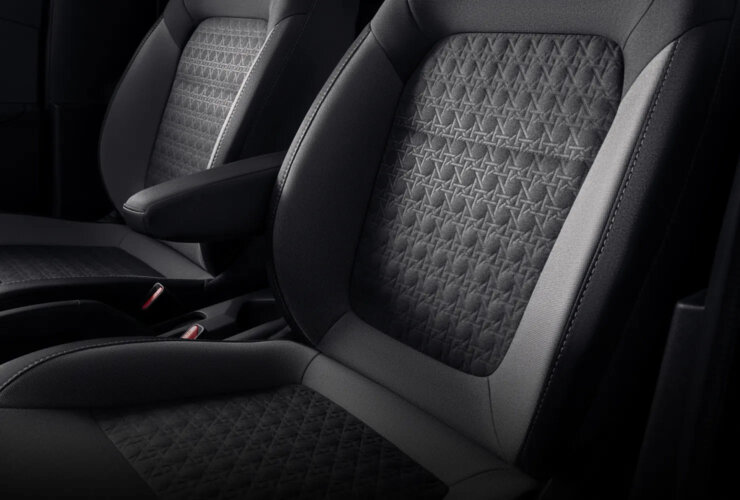 - Отделка и материалы — кожаная рукоятка КПП, комбинированная обивка сидений (от двухцветной ткани в базе до фирменных узоров в старших версиях), устойчивых к повседневным нагрузкам.