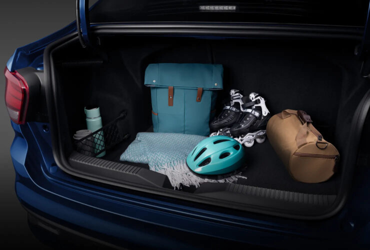 - Практичность — подстаканники, ниша для телефона, розетки для зарядки, центральный подлокотник и вместительный багажник с удобным проёмом и продуманными нишами.